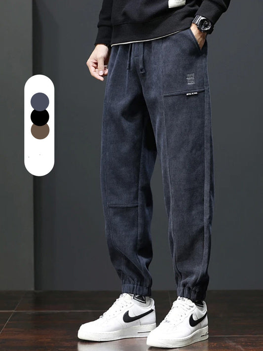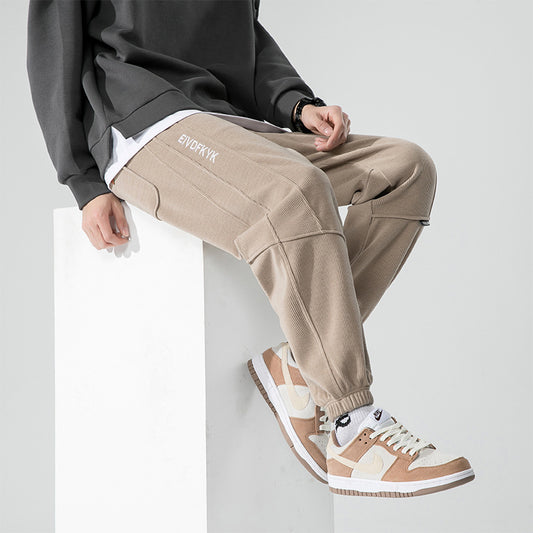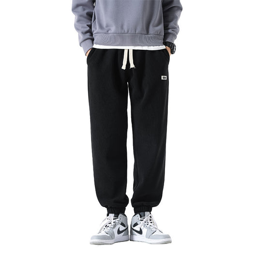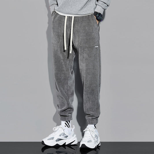Spring And Autumn Corduroy Casual Pants Men's Loose Trendy Teenagers Waffle Ankle-tied Track Sweatpants