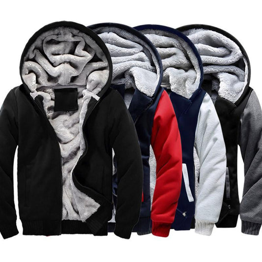 Solid Color Lamb Velvet Jacket Stand-Collar Cardigan Sweater Men