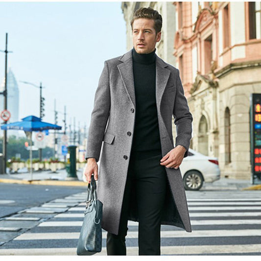 Men's Mid-length Long Sleeve Woolen Coat