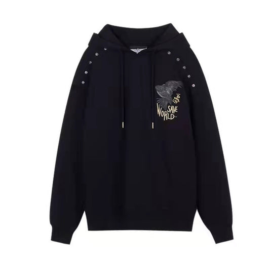 Hand Made Long Sleeve Loose Hooded Sweater Embroidery