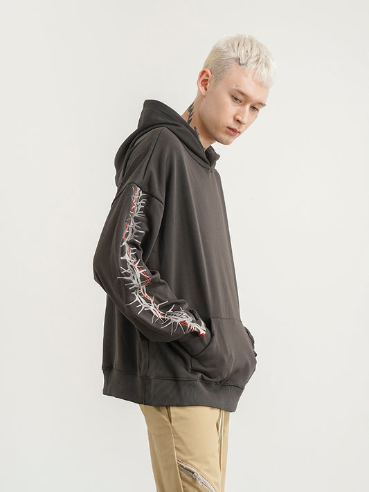 Loose Hooded Sweatshirt With Thorns Embroidery