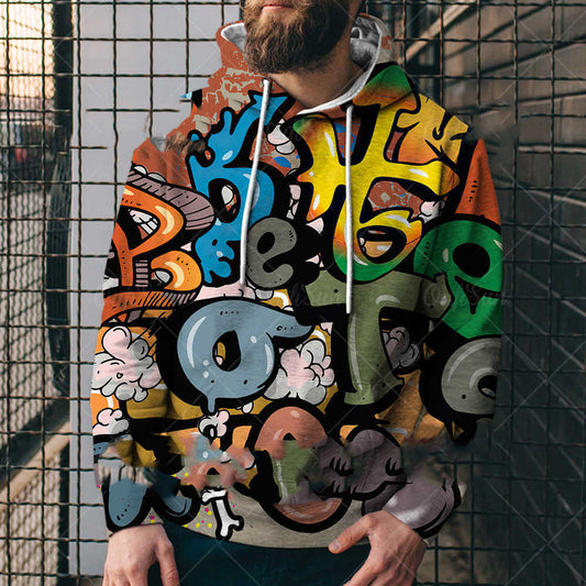 Autumn Men's Hooded Sweater Retro Style Loose 3D Printing Digital Printing