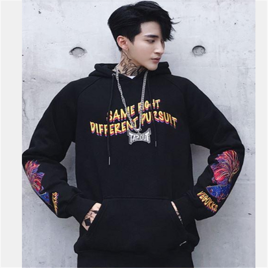 Hip-hop Hooded Sweater Men's Trendy Loose Winter Plus Velvet