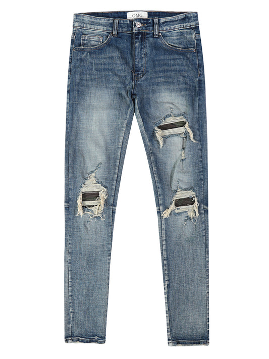 New Fashion Punk Stretch Bike Denim Jeans Street Skate HIP HOP Style Loose Trousers