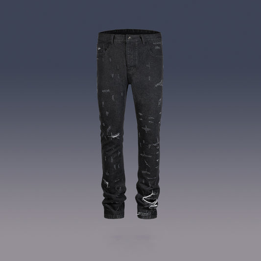 Damaged Black Cattle Tearing Trousers For Men And Women