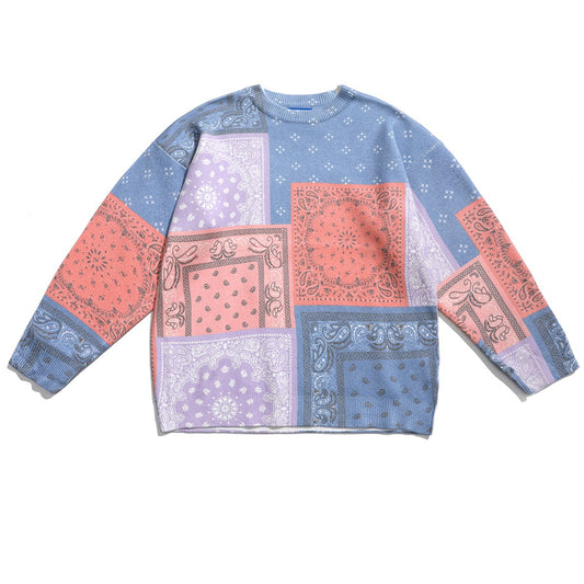 Stitching Cashew Flower Trend Sweater Men's Personality