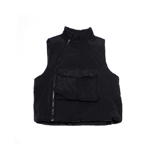 Retro Big Pocket Diagonal Zipper Cotton Vest