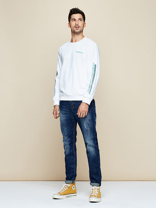 Letter embroidery crew neck sweater men