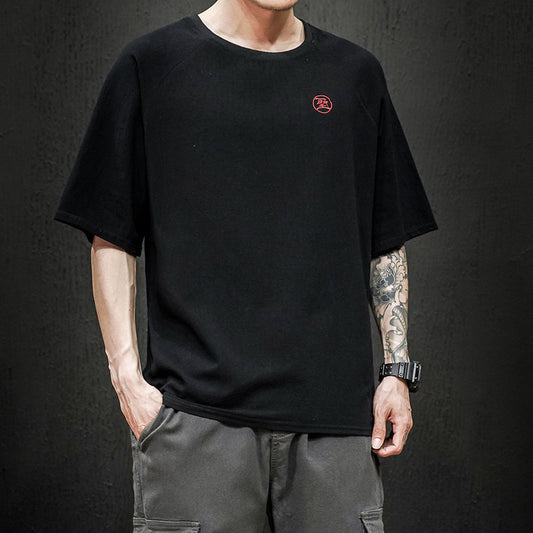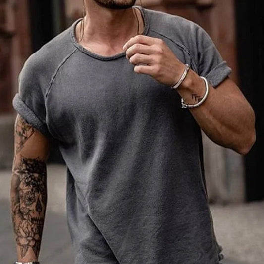Men's Loose Distressed Solid Color Street Fashion Short Sleeve