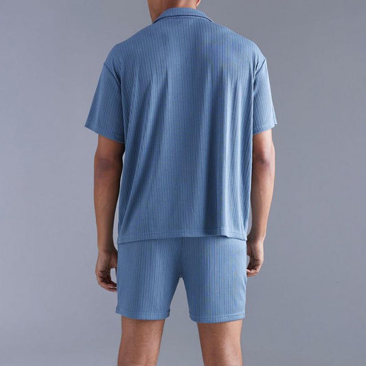 Young And Middle-aged Thin Striped Solid Color Short Sleeve