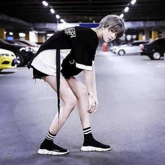 Hong Kong style black slim-fit short-sleeved t-shirt