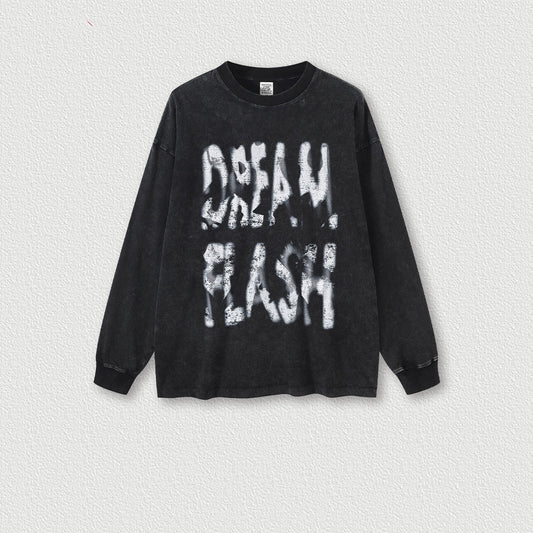 Washed Distressed Letters Printed Round Neck Long Sleeve Top