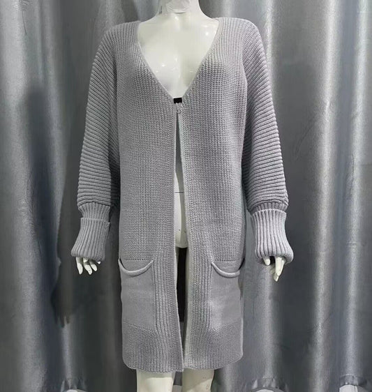 New Solid Color Loose Knitted Sweater Mid-length Coat