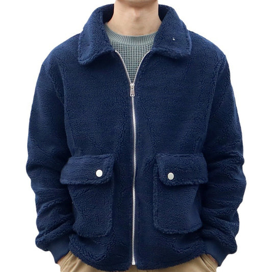 Men's Solid Color Double Pocket Lamb Wool Jacket