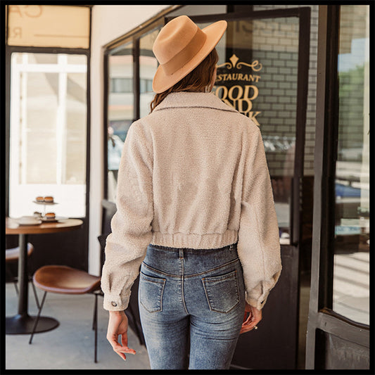 Fashion Cashmere Cardigan Short Jacket Lamb Wool Coat Women