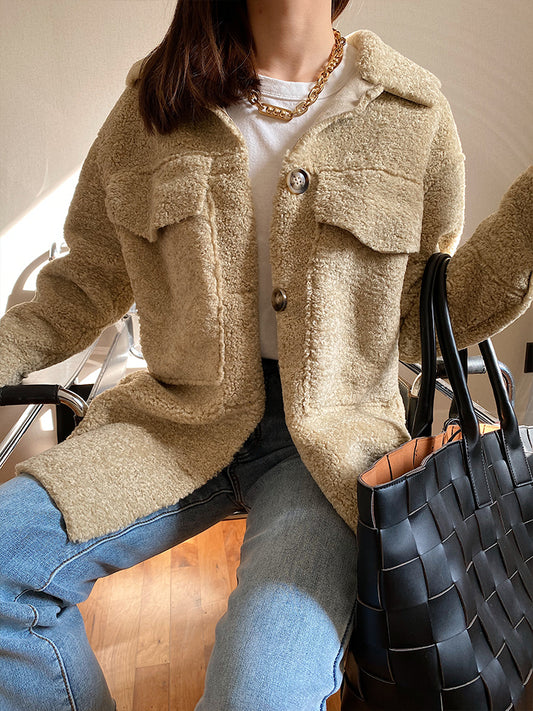 Women's Mid-Length Loose Grained Sheep Shearing Coat
