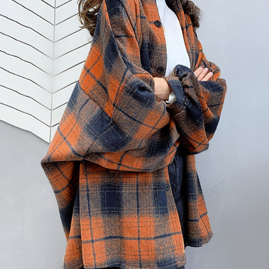 Women's Long-sleeved Lapel Plaid Coat Casual