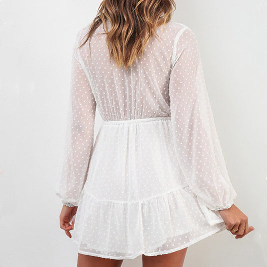 European And American Sexy Temperament Dress Hollow-out Fishbone Fake Two-piece Dress