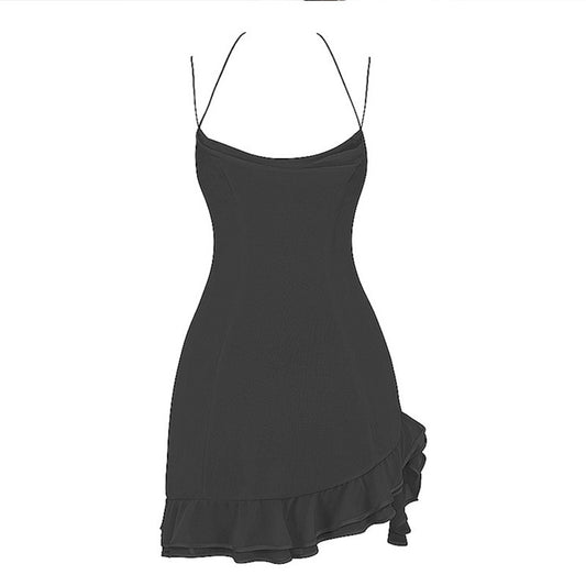 Women's Fashion Halter Off-shoulder Slim Fit Stringy Selvedge Dress