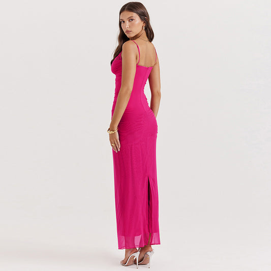European And American Hot Girl Sexy Lace Pleated Lace-up Sleeveless Short Vest Dress