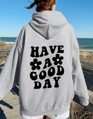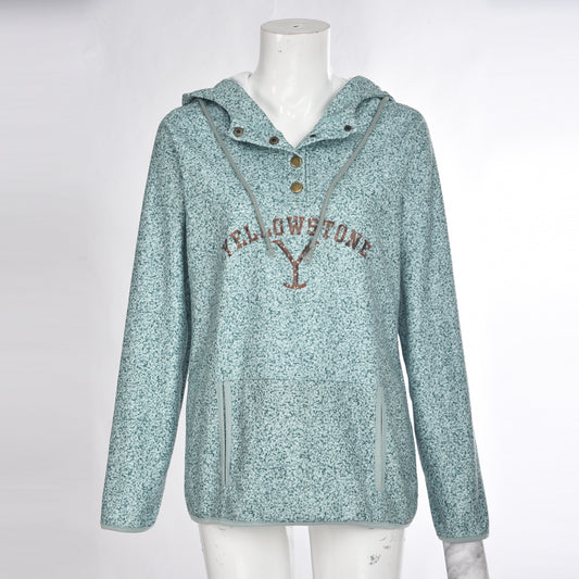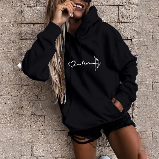 Women's Letter Pocket Drawstring Printed Hoodie