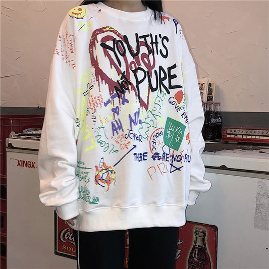 Printed Long-sleeved Casual Sweater Loose Blouse