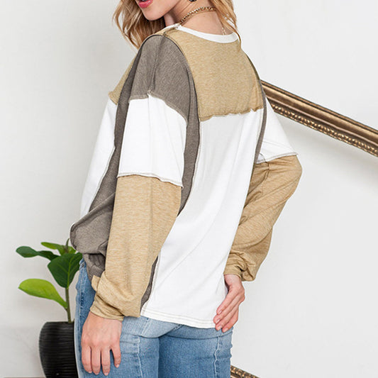 New Color Contrast Patchwork Long-sleeved Top For Women