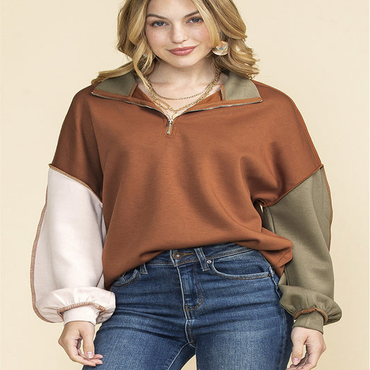 Women's Colorblock Crew Neck Flannel Sweatshirt