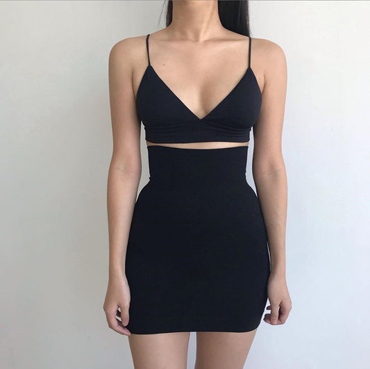 Solid color high waist sexy bag hip A-line skirt