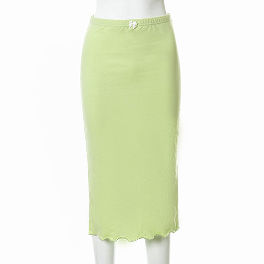 European American Summer New Women's Low Waist Solid Color Side Slit Wooden Ear Hip Bag Female Skirt