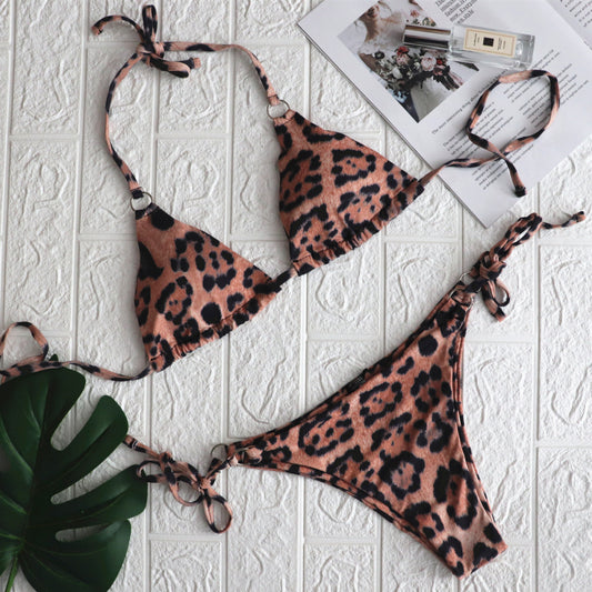Swimsuit Leopard Print Split Metal Ring Sexy Swimsuit