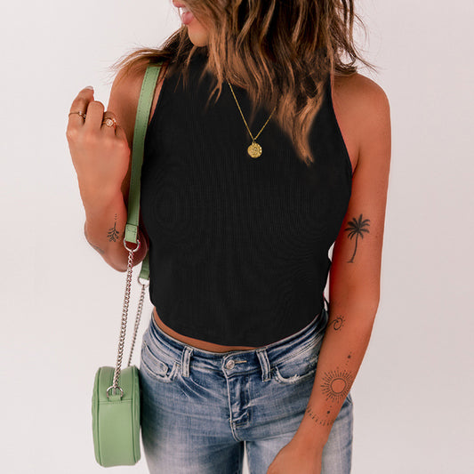 New Solid Color Sleeveless Slim Slimming Threaded Vest Women's Outer Wear
