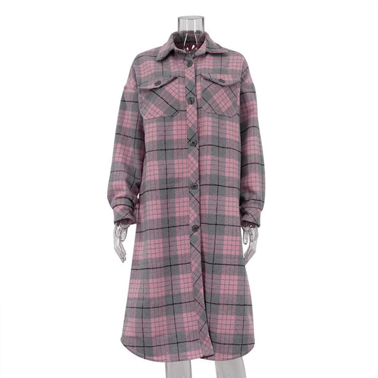 Women's Long-sleeved Lapel Plaid Coat Casual