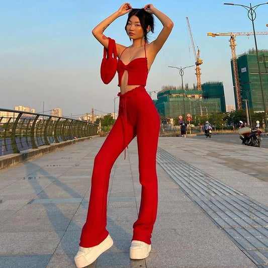 Women's Drawstring Cross Halter Wrap Wrap Bottoms