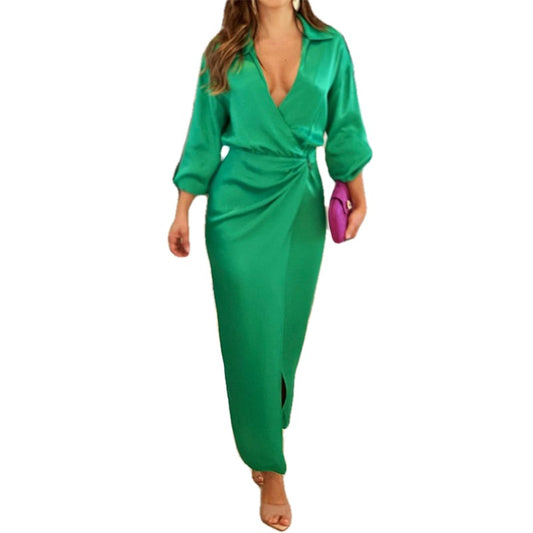 Women's Fashion Elegant Long V-neck High Waist Dress