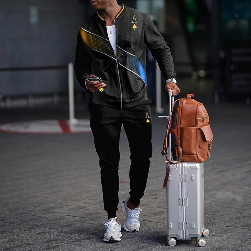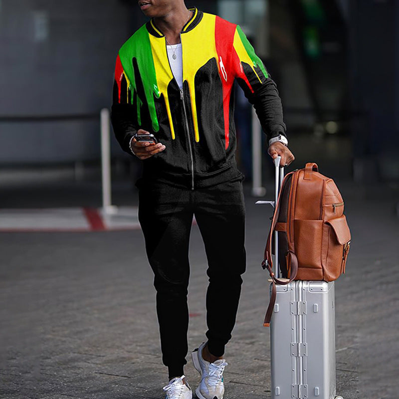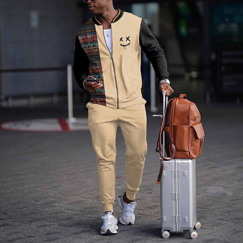 Autumn And Winter Men's Contrast Color Stand-up Collar Jacket Suits