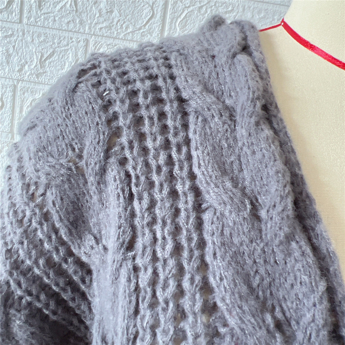 Hemp Flower Shoulder Sleeve Long Sweater Coat Women