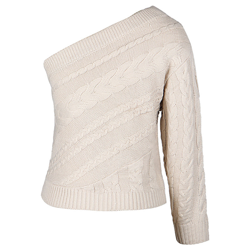 Slim Fit, Loose And Thin, All-match Oblique Shoulder Long-sleeved Sweater