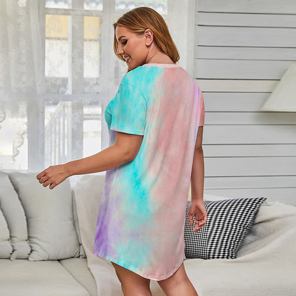 Tie Dyed Long Loose Buttock Covering Housewear For Ladies